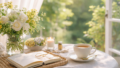 柔らかな光の中で、お気に入りのカップを手にゆったりと自分時間を楽しむ60代の日常 お金と仕事